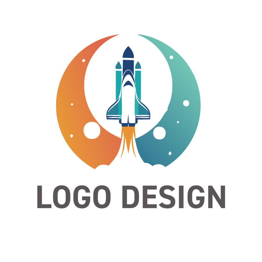 このロゴデザイン原案は、円弧を描く月を背景に、中央に配置されたスペースシャトルが勢いよく飛び立つ瞬間を捉えています。月は暖色系のオレンジと寒色系のブルーで塗り分けられ、それぞれが星々を散りばめた宇宙空間を表現しているかのようです。この色彩のコントラストが、ロゴ全体にダイナミックな印象と視覚的な奥行きを与えています。スペースシャトル本体は、白と濃い青を基調としたシャープなデザインで描かれ、噴射される炎のオレンジ色が、その推進力とエネルギーを強調しています。全体の構図からは、既成概念を打ち破り、未知の領域へと果敢に挑むフロンティアスピリットが感じられます。