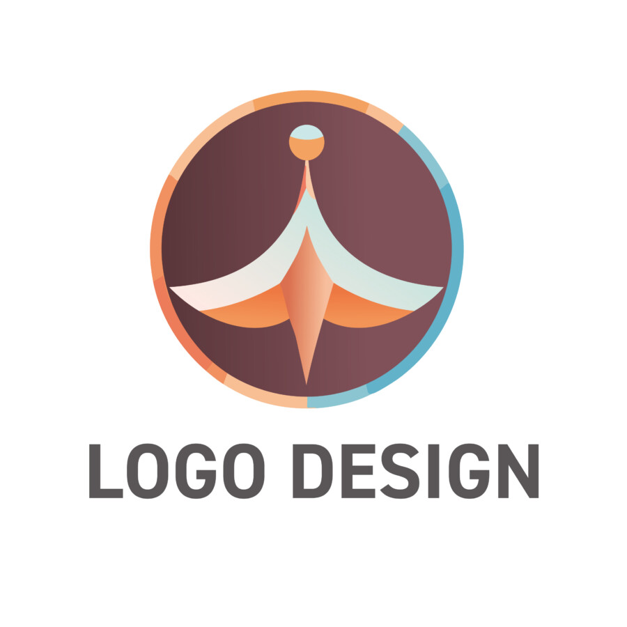 落ち着いた深い青の円を背景に、柔らかなグラデーションで彩られた優美なモチーフが浮かび上がる。このロゴ原案は、まるで依頼人を優しく包み込むシェルターのようでもあり、あるいは未来へと羽ばたく鳥の姿のようにも見えます。中央のモチーフが放つ温かみのある色合いは、専門家としての人間的な温もりや親しみやすさを感じさせ、見る人に安心感を与えます。最上部に輝く一点は、クライアントを導く確かな指針を示しているかのようです。