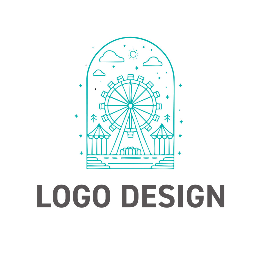 アーチ型の窓の向こうに、観覧車やテントが並ぶ楽しげな遊園地の風景が広がるロゴ原案です。散りばめられた星のきらめきが、魔法のような特別な時間を演出。どこか懐かしく、まるでおとぎ話の世界へ迷い込んだかのような、ファンタジックな雰囲気が魅力です。これから始まる非日常体験へのワクワク感を高めてくれます。