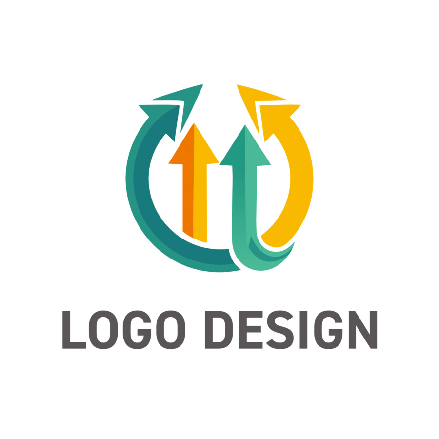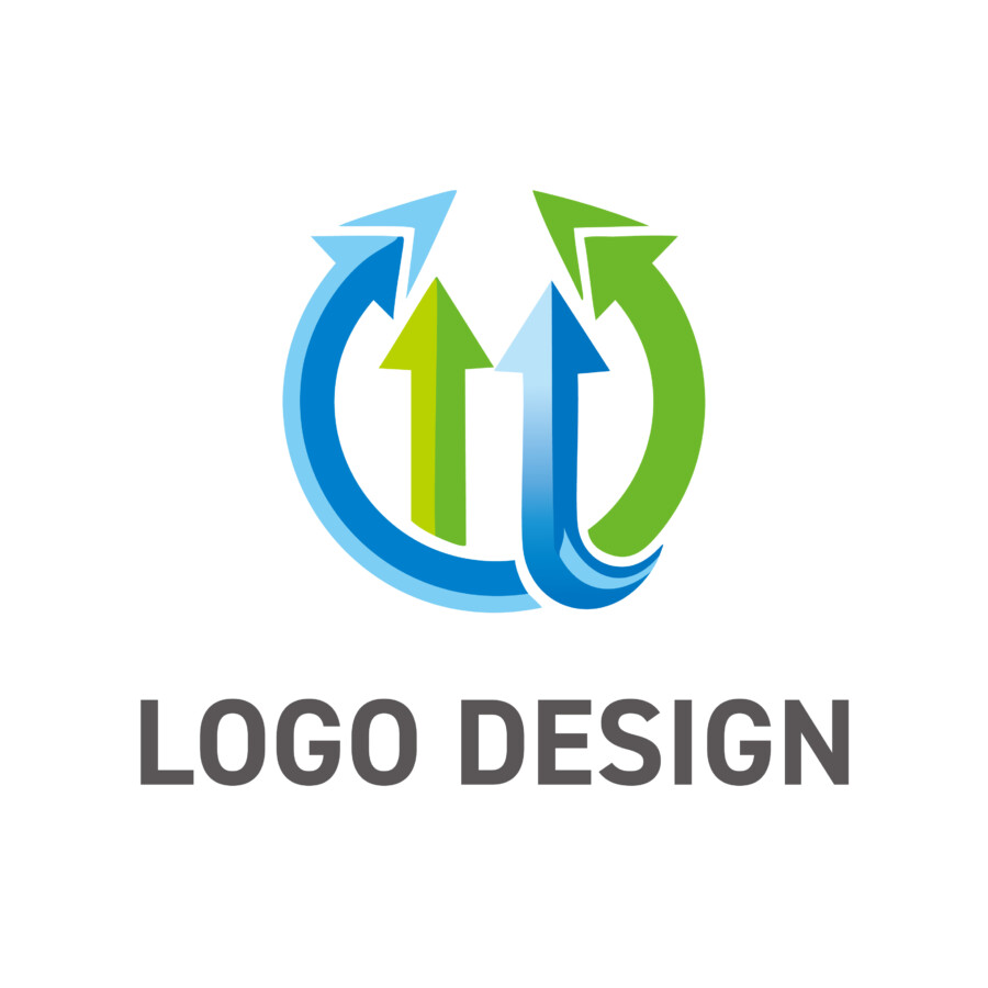 このロゴデザイン原案の核心は、「循環する力」が「成長する力」を生み出すという、事業の理想的なメカニズムを可視化している点にあります。中央でまっすぐに上を向く2本の矢印は、業績の向上や技術の進化、あるいは社会の発展といった、明確な「成長」や「前進」を表現しています。これは、企業の目指すべきゴールを分かりやすく示すシンボルと言えるでしょう。
