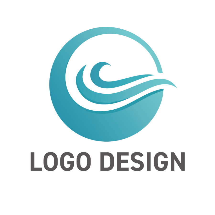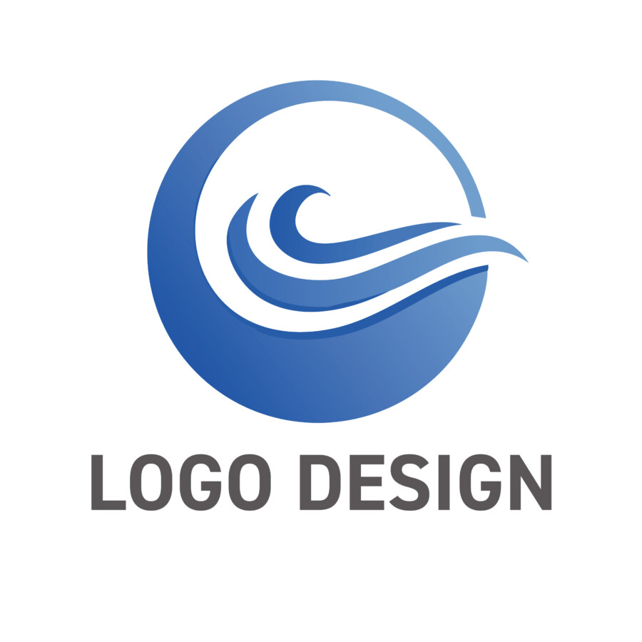 このロゴデザイン原案の核となるのは、円と波という二つの基本的な要素の組み合わせです。背景となる円は、それ自体が完全性や永遠性、そしてグローバルな広がりを意味します。この円形のフレームは、ロゴ全体にまとまりと安定感を与え、その中で活動する企業や組織が持つ包括的な視野や、社会との調和を大切にする姿勢を示唆しているかのようです。円の下部から上部にかけて施された淡い青のグラデーションは、まるで水面から空へと続くような広がりや、物事の始まりから未来への展望を感じさせます。