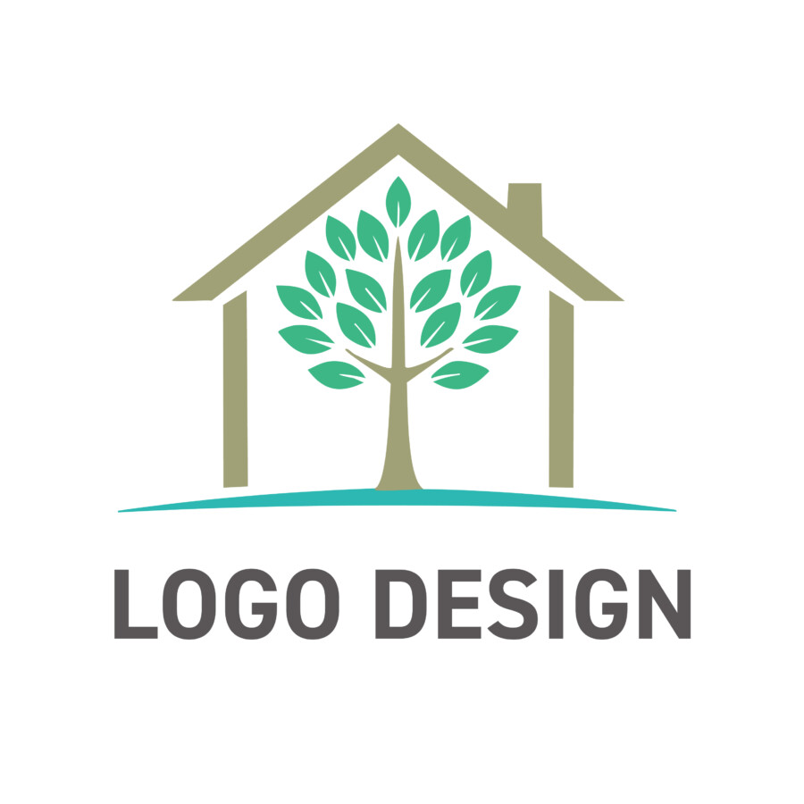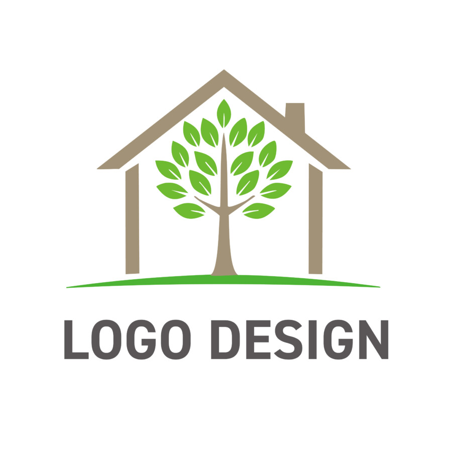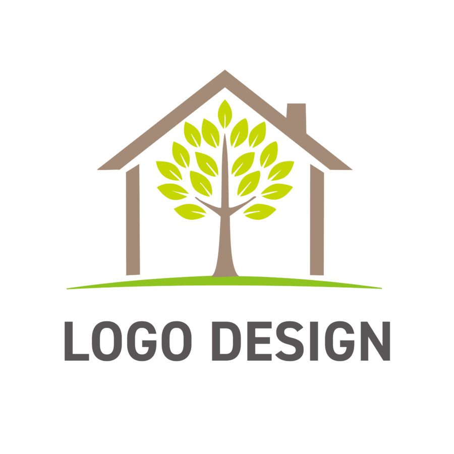 木の幹や家のフレームに使われている茶色は、大地や木の温もり、安定感を。そして、葉や地面を表す緑色は、フレッシュな生命力、癒やし、そして環境への配慮を連想させます。これらの色の組み合わせは、見る人に心地よさと安心感を与え、企業やブランドに対する親しみやすさを高める効果が期待できます。家の下に引かれた緩やかな緑のラインは、豊かな土壌や、地域社会とのつながり、あるいは事業の安定した基盤を象徴しているのかもしれません。