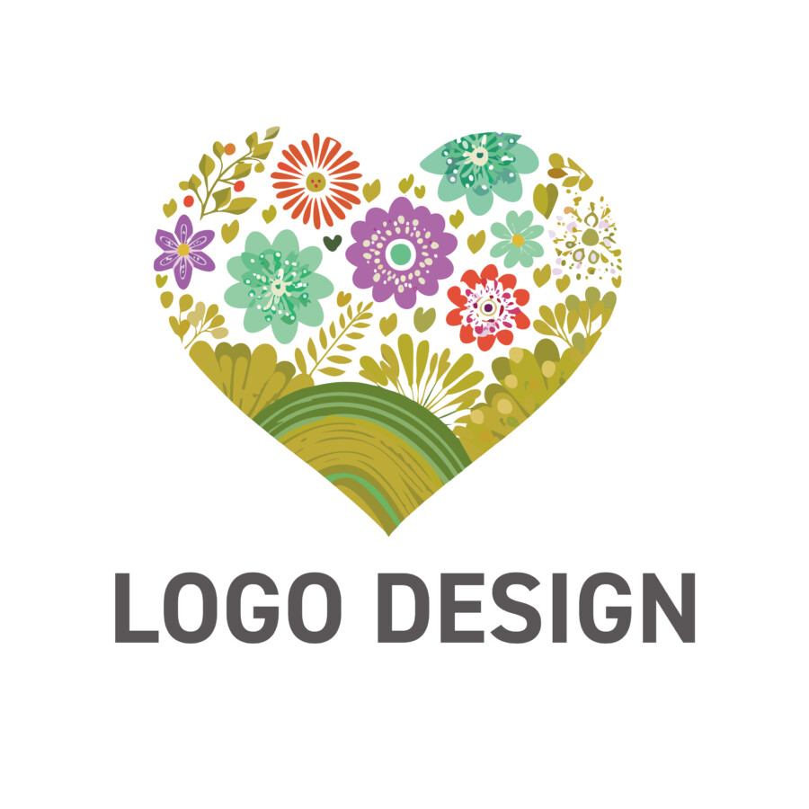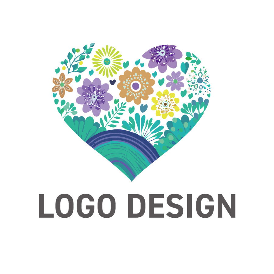 このハートの中に花々や緑が咲き誇るロゴデザイン原案は、まるで生命賛歌のような、明るくポジティブなエネルギーに満ちあふれています。ハートという誰もが知る愛情や心の象徴的な形の中に、色とりどりの花、様々な形の葉、そして緑豊かな大地を思わせるモチーフが、まるで一つの生態系のように共存しています。一つひとつの植物のディテールはシンプルながらも個性的で、手描きのような温かみのあるタッチが、見る人に安心感と親しみやすさを与えてくれます。