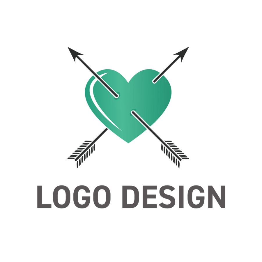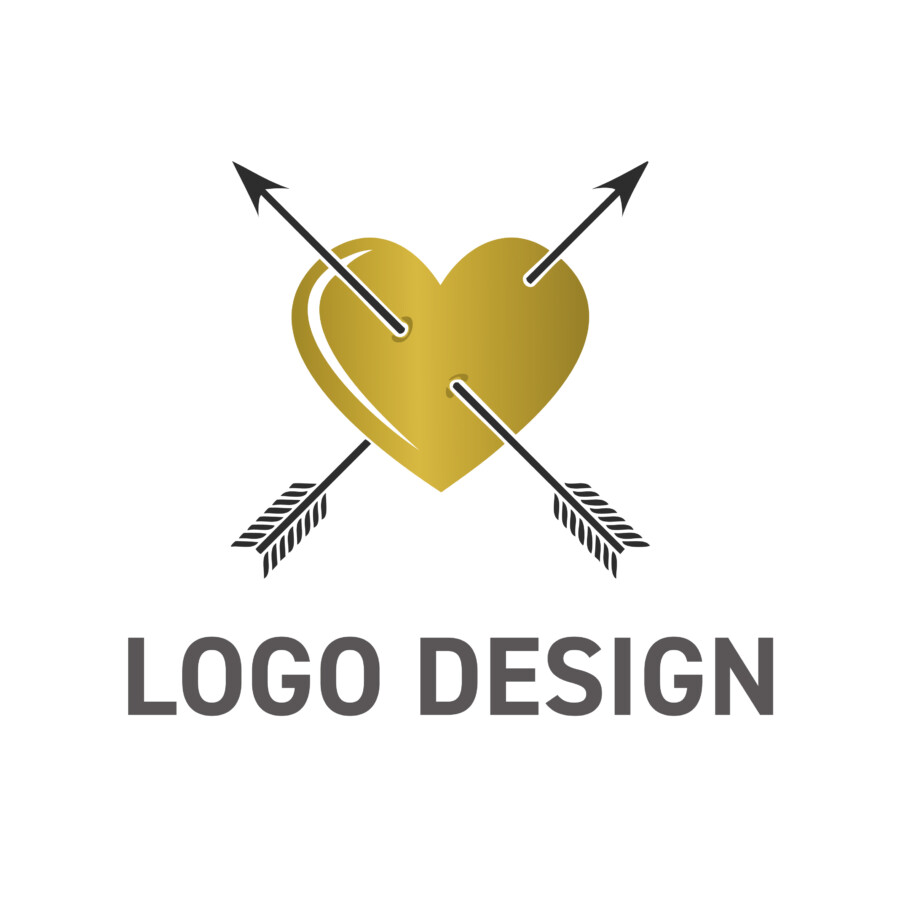 心を射抜く情熱、赤いハートと交差する矢のロゴデザイン