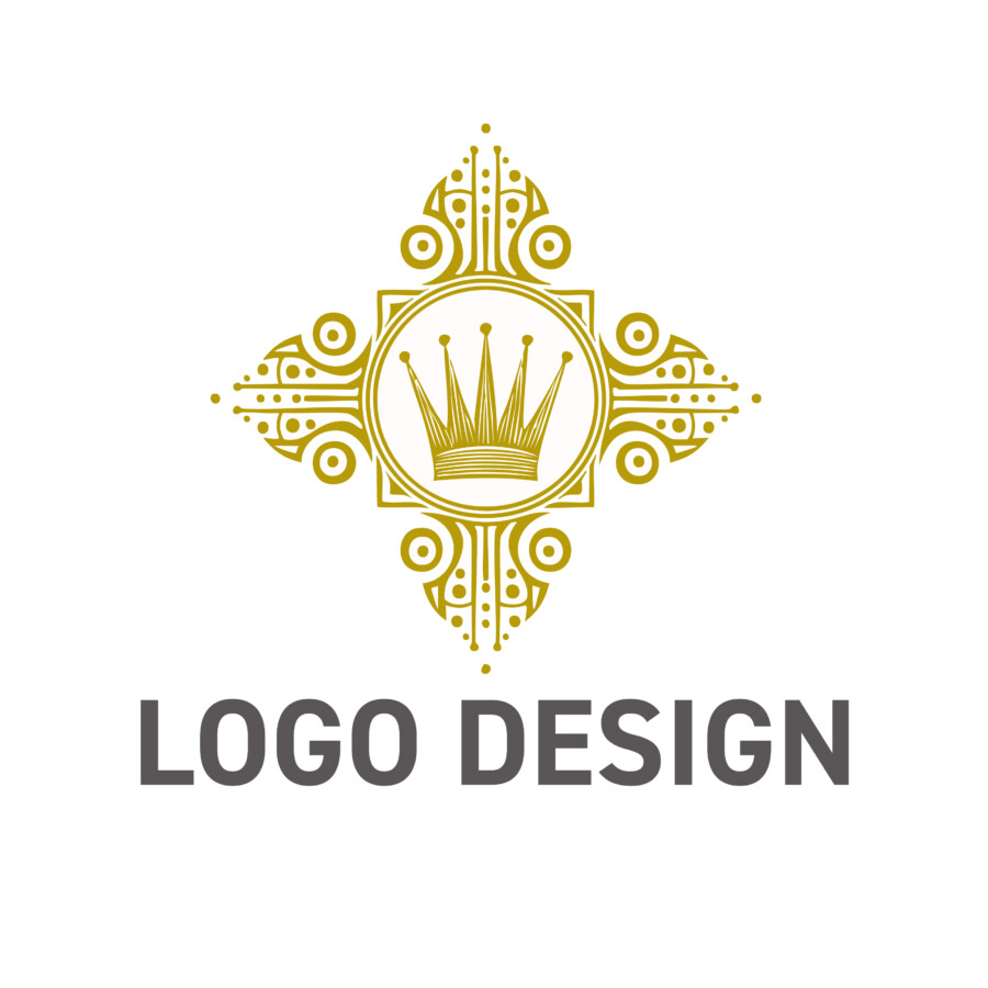 このロゴデザインは、単に「高級そう」という印象を与えるだけでなく、ブランドが大切にしている価値観や、顧客に提供したいと考える体験の質を、静かに、しかし力強く物語ります。中心の王冠だけでなく、それを取り巻く繊細でシンメトリーな装飾も重要な役割を果たしています。これらは「調和」「安定」「細部への配慮」といったメッセージを伝え、ブランド全体の洗練されたイメージを補強します。色使いや線の太さ、装飾の密度などを調整することで、さらに多様な業種やブランドイメージに対応できる柔軟性も持ち合わせていると言えるでしょう。ロゴは、顧客との最初の接点となることも多いため、このような印象深いデザインは、ブランド認知の向上にも貢献することが期待されます。
