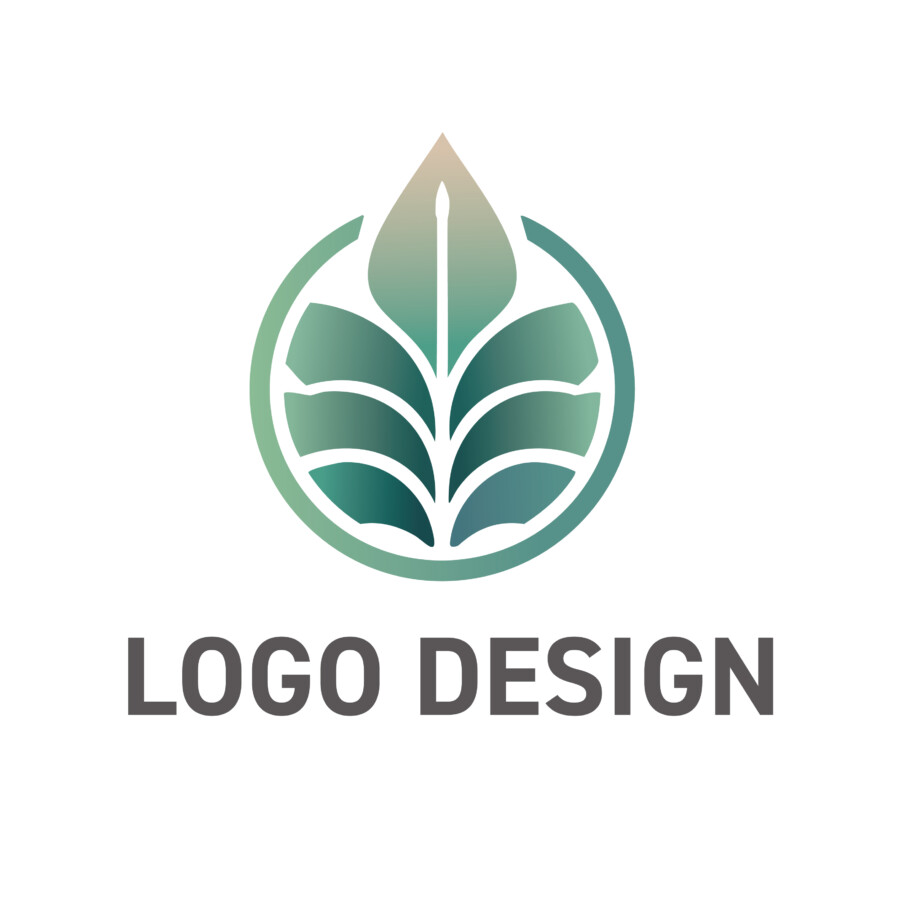 このロゴデザイン原案は、中央の植物モチーフが非常にダイナミックで、見る人の目を引きますね。勢いよく上へと伸びる葉の形状は、成長や発展、そして未来への希望を力強く表現しているようです。葉の先端が、まるで水滴や炎のようにも見えるユニークなフォルムは、内に秘めたエネルギーや革新性を感じさせます。鮮やかな緑色のグラデーションは、フレッシュで生き生きとした印象を与え、生命の息吹や自然の持つ豊かさを象徴していると言えるでしょう。